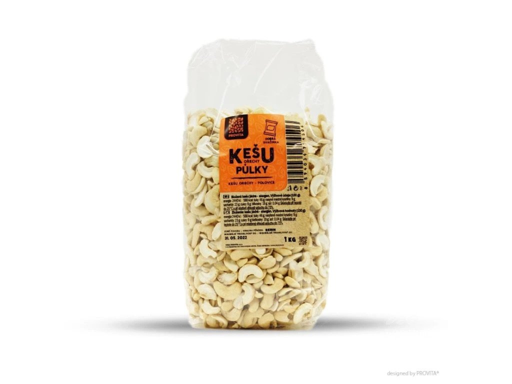 Nepražené a nesolené kešu oriešky. Kešu orechy sú veľmi chutné, prirodzene sladkasté, krémové a veľmi výživné. Sú bohaté na zdraviu prospešné tuky, bielkoviny, vitamíny (najmä K, B1, B6) a mnohé minerály (meď, mangán, horčík, fosfor, zinok, selén). Orechy vo všeobecnosti patria medzi najzdravšie potraviny a konzumácia asi hrsti denne napomáha nielen k správne fungujúcemu telu a mysli, ale i dlhovekosti. Kešu si vychutnáte samotné, ako prísadu do müsli, koláčov, pesta a indického kari či na ozdobu šalátov a iných jedál. Vďaka hustej krémovej konzistencii po rozmixovaní sa tiež často využívajú na prípravu zdravších nemliečnych omáčok, krémov či raw dezertov. Môžete si z nich tiež vyrobiť domáce kešu maslo a mlieko.