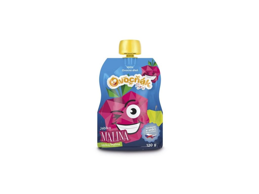 100% jablčno-malinová ovocná dreň vyrobená v srdci Bielych Karpát zo starostlivo vyberaných plodov z certifikovaných sadov a od overených pestovateľov. Pyré je vynikajúce pre stravovanie malých detí, pretože je ľahko stráviteľné a bohaté na živiny – ovocie je skvelým zdrojom vitamínov, antioxidantov i vlákniny. Chutí však aj dospelým a vďaka šikovnému baleniu je výborným spoločníkom aj na výlety. Na jedno balenie drene bolo použitých 170g ovocia, ktoré bolo šetrne pasterizované pri teplote do 82C, aby sa v ňom zachovalo len to najlepšie. Pyré nie je nijako zahusťované a je bez konzervantov, pridaného cukru, škrobu, aróm a umelých prísad. Prirodzene vegánsky a bezlepkový produkt.